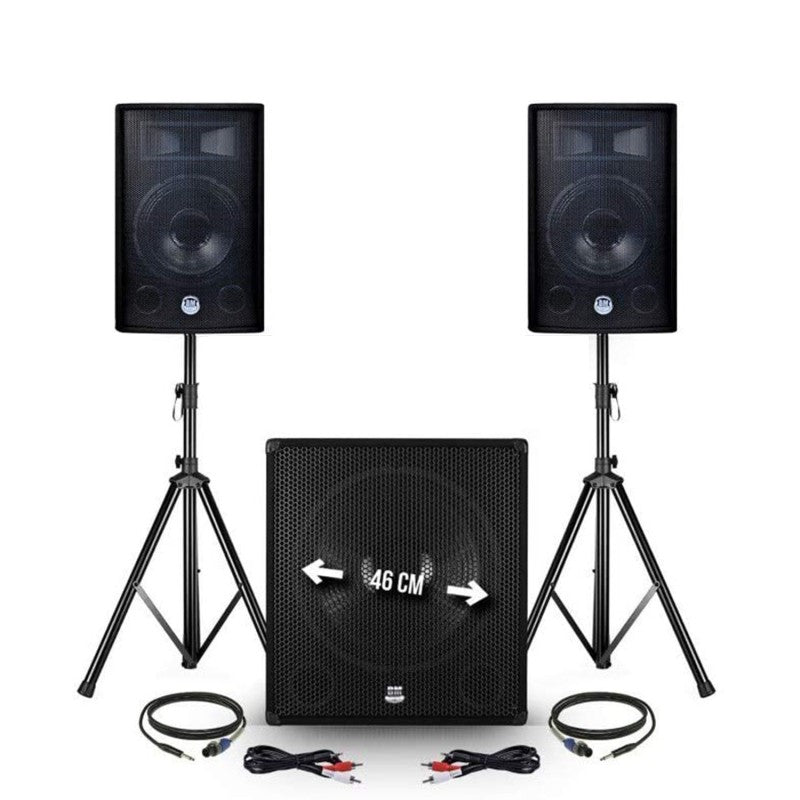 BM SONIC – Výkonná audio súprava 2400 W s 2 reproduktormi 12″, subwooferom 18″, stojanmi, mikrofónom, USB, Bluetooth a AUX